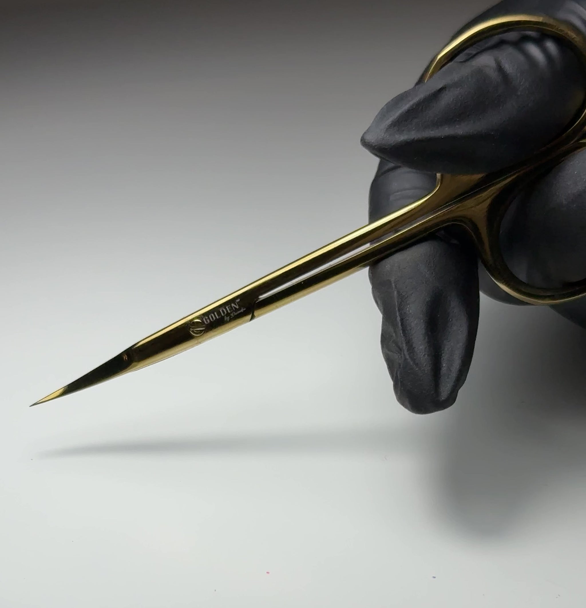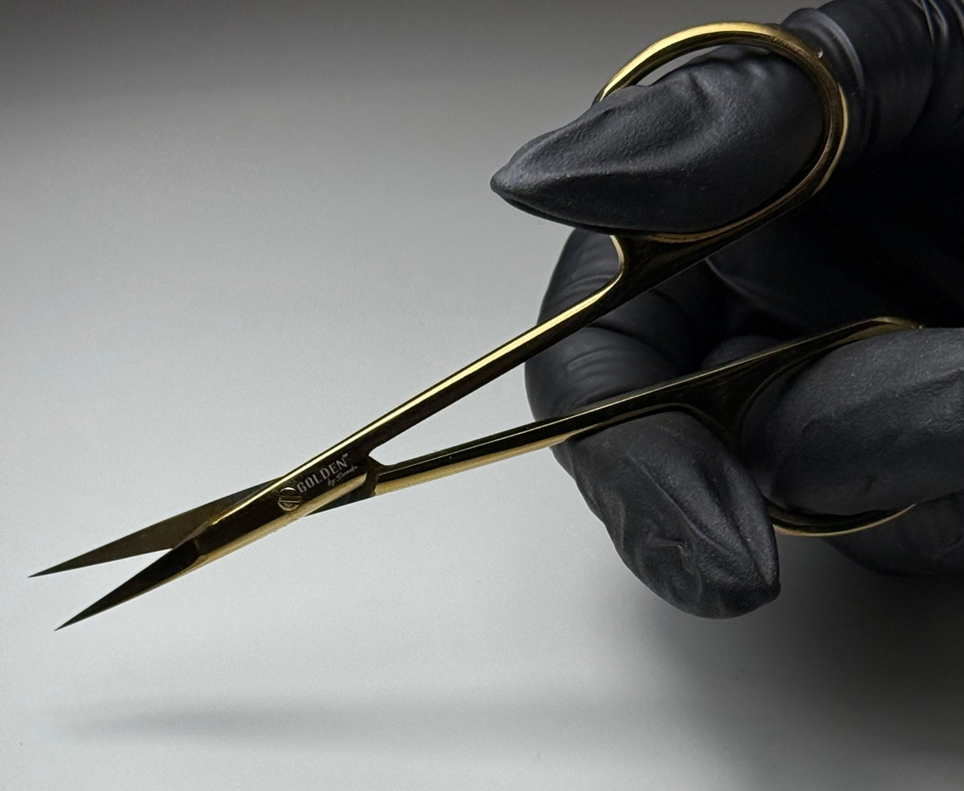 The scissors feature a beautiful gold color with a high-gloss finish, adding a luxurious touch to any nail station. Perfect for professional salon use as well as advanced home manicures.